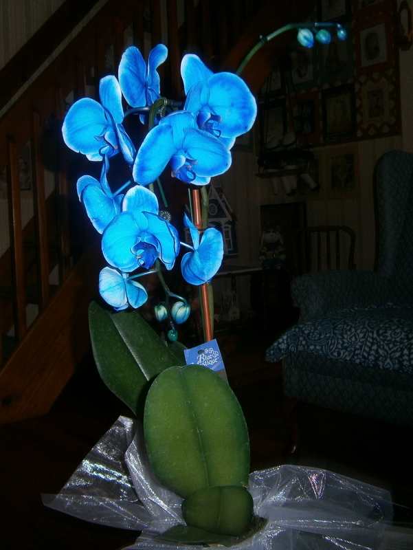 It is truly an amazing orchid. I'll bet you can observe them now at Walmart and Home Depot. They are really pop. Wish I had thought of turning a white orchid to bluish!